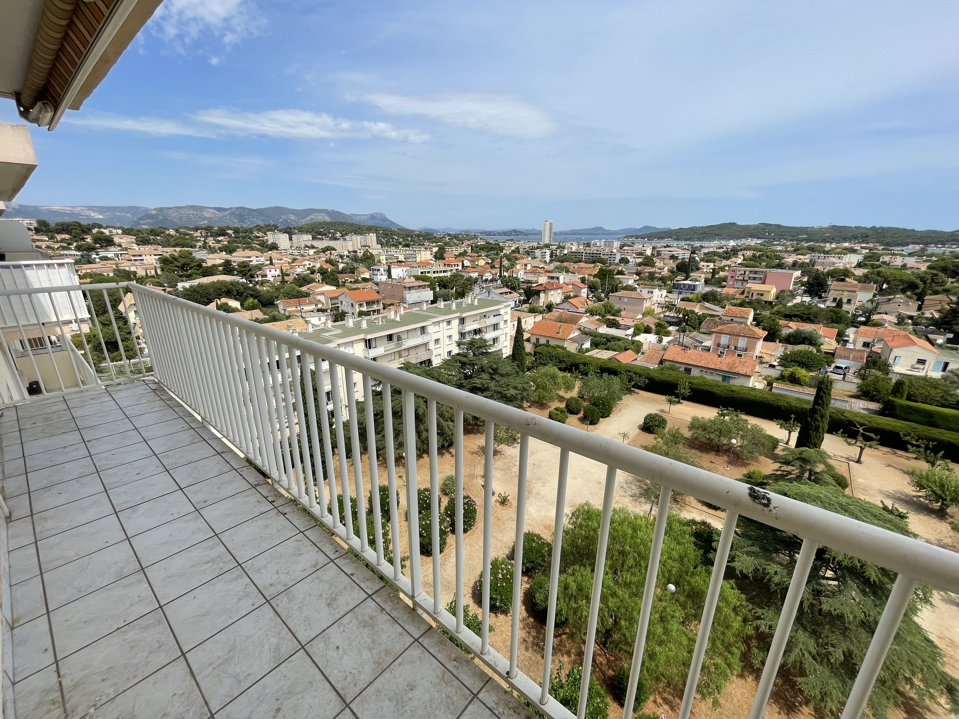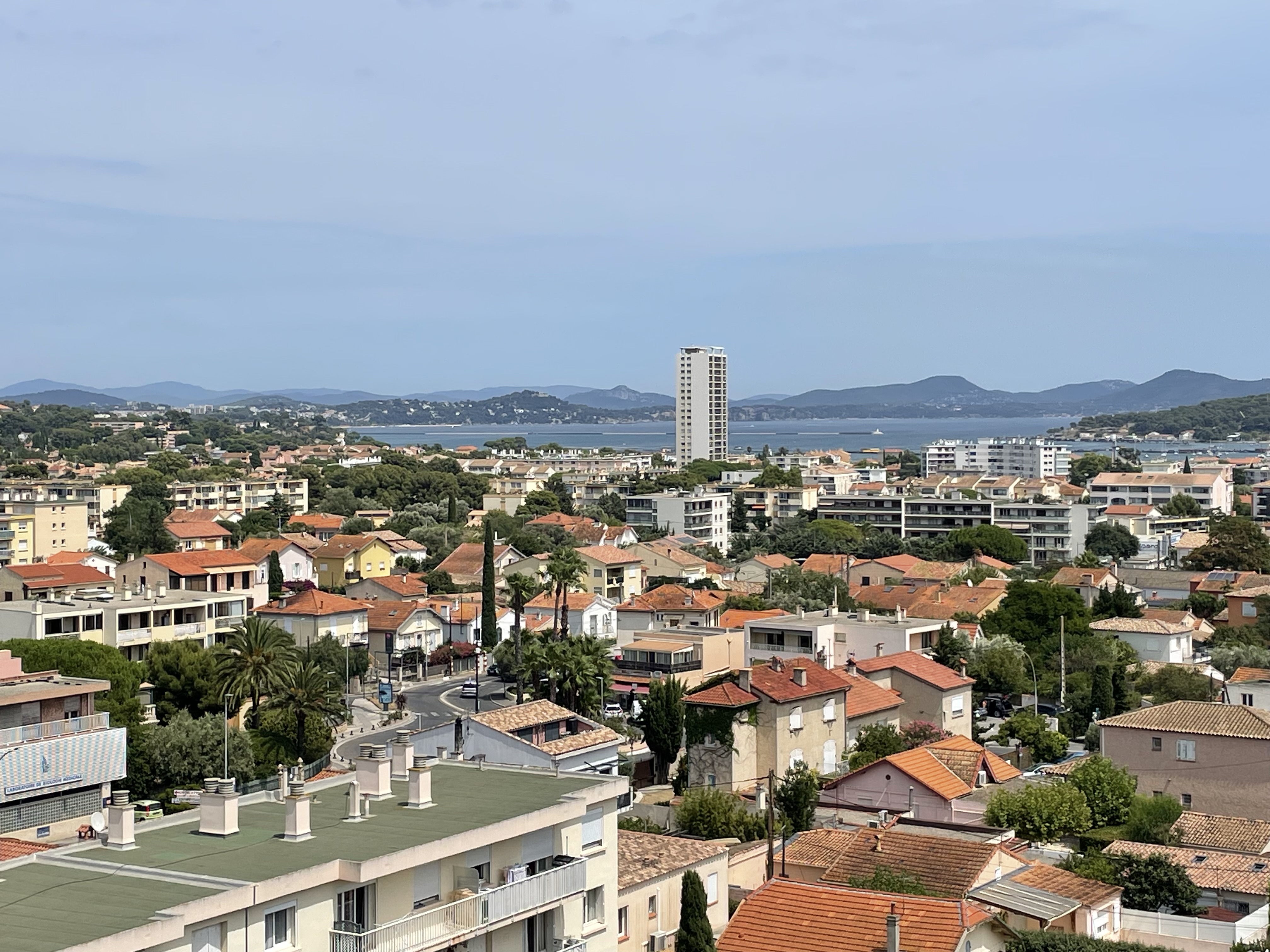 La Seyne, Les Plaines, appartement FxT3 de 50.50m² LUMINEUX et TRAVERSANT au sein d'une résidence arborée et SÉCURISEE. Situé au dernier étage, l'appartement offre une VUE IMPRENABLE sur les baies de Tamaris ET des Sablettes.